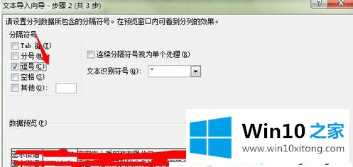 2、选择分割符号为 逗号(如果第一步中分隔符号为其他,在这里一步要选择其他的情况);