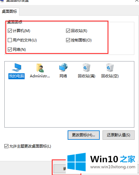 3、继续在跳转的界面中,勾选桌面图标,点击确定即可在桌面显示图标,反之取消勾选就隐藏图标。