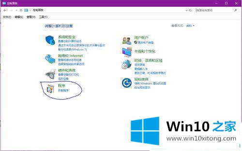 第二步:在打开的控制面板界面,点击【程序】按钮。