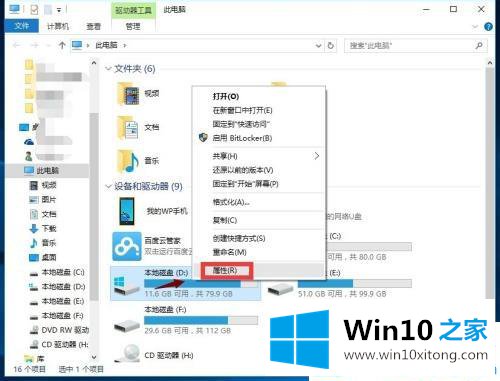 第二步:打开win1064位的系统盘图标,鼠标右键任意盘,随后弹出的菜单栏点击【属性】。