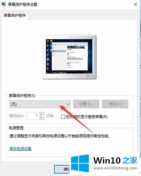第四步:接着就会弹出【屏幕保护程序设置】,通过下拉【屏幕保护程序】选项,更多win10下载尽在Win10之家www.aichunjing.com选择合适的屏幕保护程序。