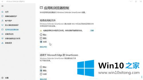 第七步:最后我们勾选检查应用和文件下方的关闭,这样系统就不会检查我们所下载的文件了,这样也不会删除我的文件