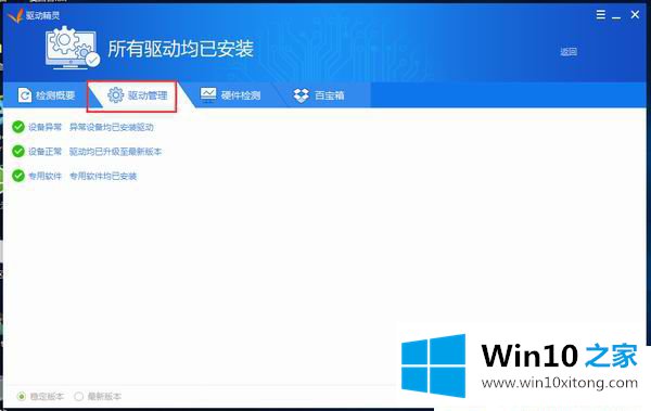 第二步:点击"驱动管理",自动检测异常,解决问题。