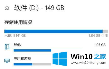 第四步:在右边点击想要查看的硬盘,使用情况(这里点D盘);