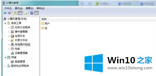 第五步:进入计算机管理界面,依次点击【本地用户和组】【用户】;