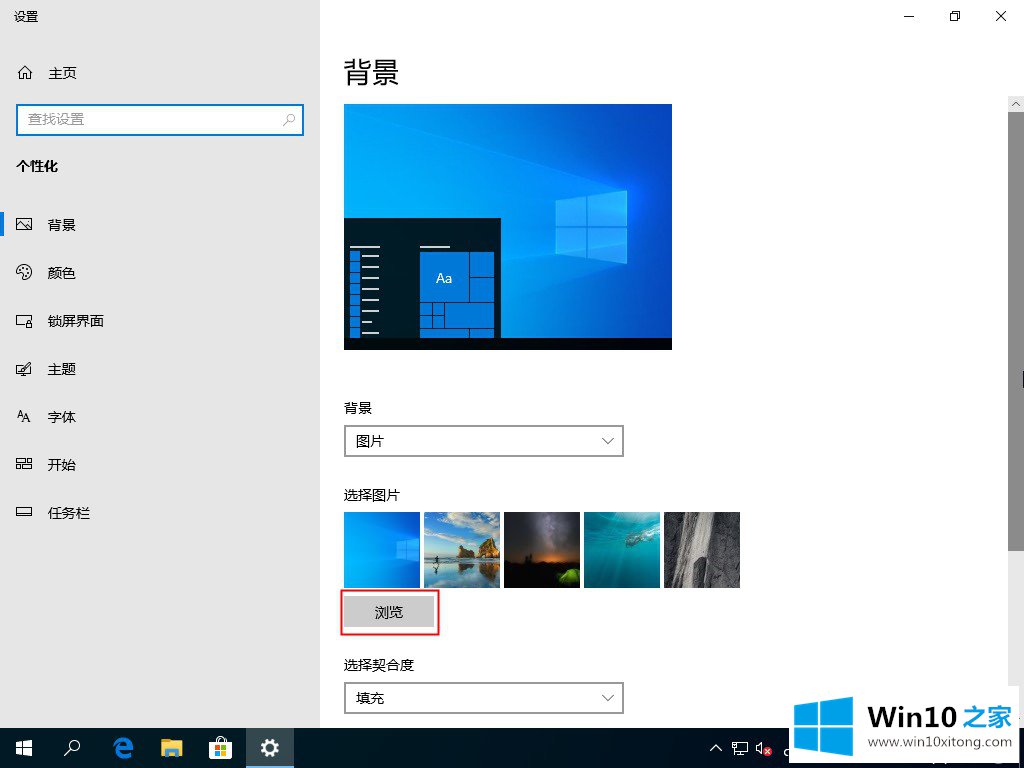2.我们进入个性化页面,点击后台选项,点击右侧的浏览按钮。