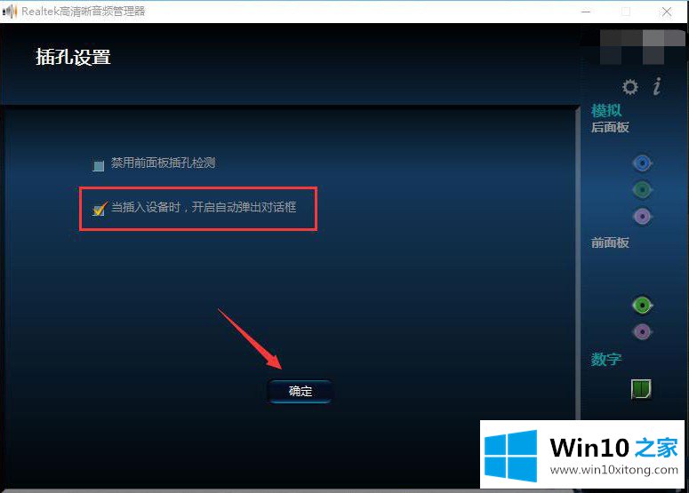 4.勾选【插入设备时,打开自动弹出对话框】,点击【确定】保存设置。