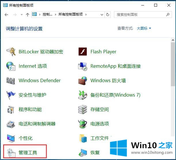 01.在控制面板中,选择“管理工具”选项,如图所示。