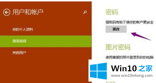 3,单击登陆栏目,找到这个界面可以到可以修改密码,图片密码等等。我这个时候要讲述的是修改和更新密码。就在密码然后的更改按下钮。像果是全部是白色则可以修改。