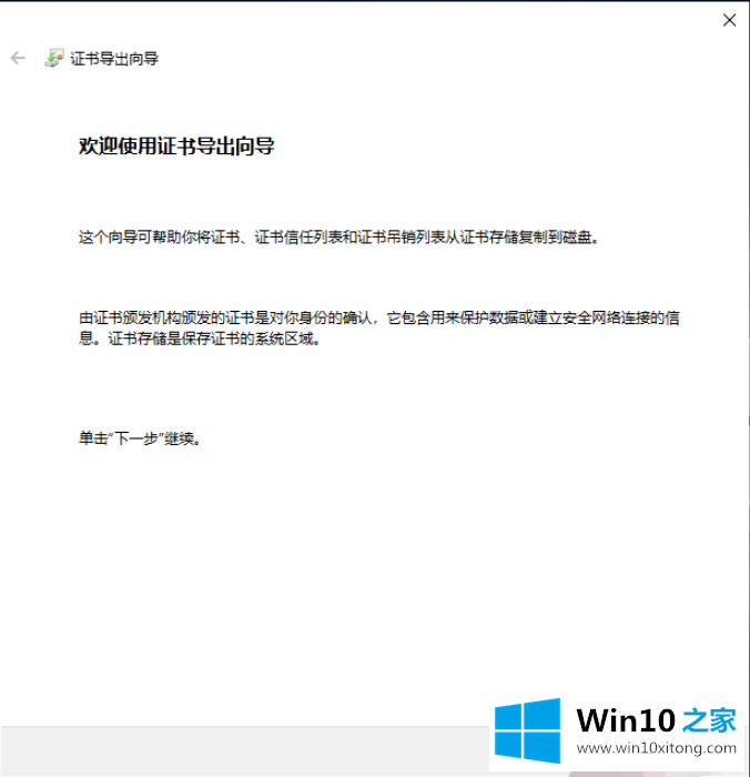 7.证书导出向导,您可以阅读以下内容,然后单击下一步;导出文件格式,可以导出不同文件格式的证书,如果不知道如何选择,直接默认,然后点击下一步;
