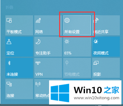2.单击托盘上的“通知”图标,然后单击“所有设置”;如图所示: