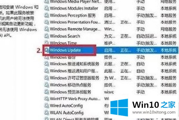 3.然后在右边目录中找到“Windows Update”,双击选中即可;