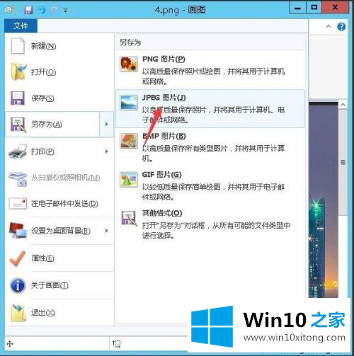 4.选择要保存的文件格式,并在此选择将其另存为jpeg。