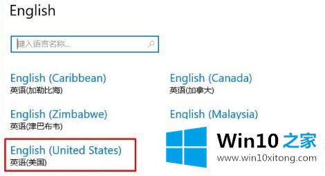4.要选择英语,首先输入“英语”,然后选择“英语(美国)”。