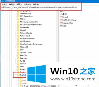 7.然后找到以下路径HKEY _本地_机器\软件\微软\ Windows NT \当前版本\配置文件列表