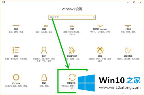 1.首先,我们使用快捷键“win I”打开【设置】界面,在设置界面选择【更新和安全】。