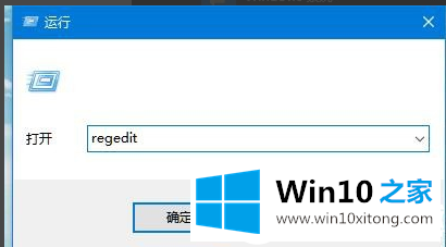 2.在打开的窗口10“运行”窗口中,输入命令“regedit”,然后单击“确定”按钮。