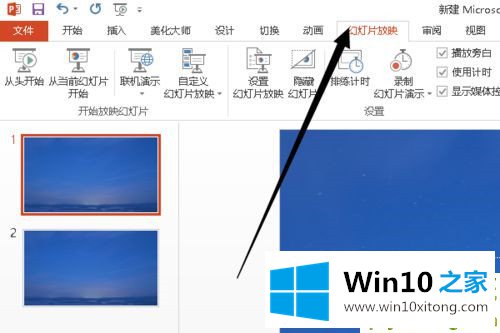 8.要显示完成的幻灯片,请单击图片中箭头指示的位置。