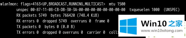 3.使用airmon-ng start wlan1命令打开网卡监控。网卡有自己的选择。我在这里选择外部网卡wlan1,并使用ifconfig命令检查监控模式是否打开。如果无线接口wlan0变为wlan0mon,则意味着监控模式开启。