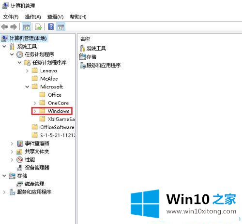 第二步:打开win1064位系统的[计算机管理]窗口,双击鼠标打开[任务调度器】。