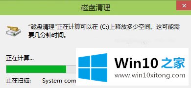3.此时,我们在弹出的窗口中选择用户系统盘(通常默认为c盘),然后点击确定。之后需要等待十秒左右(根据你的电脑情况,耐心等待,它就会出来),然后磁盘清理功能的窗口就会出来;
