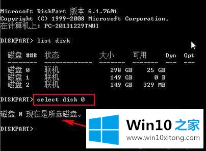 3.输入:选择Disk 0 (DIsk 0指的是选中的Disk 0,如果你的电脑上显示的不是0,请将其改为对应的磁盘号)