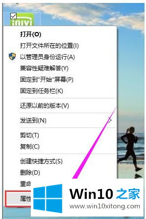 1.在不能正常使用的软件上点击鼠标右键选择“属性”。