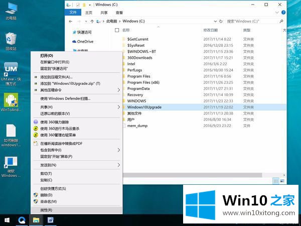 1.找到驱动器C下的“Windows10Upgrade”文件夹,先删除文件夹中的所有文件;