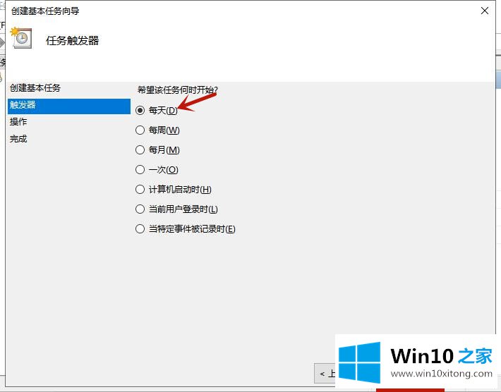 4.选择触发频率。边肖在这里选择“每天”,并继续点击“下一步”。