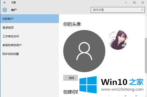 6、从打开的“你的账户”选项卡界面中,点击“你的头像”栏目中的“浏览”按钮,并选择以上目录中的文件名为“User”的图片做为用户头像即可。