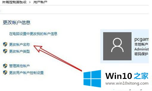 3、在打开的用户帐户窗口中,我们找到一个“更改帐户名称”的快捷链接。
