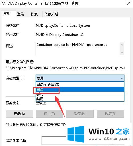 5、双击打开NVIDIA Display Container LS服务,启动类型改为自动。