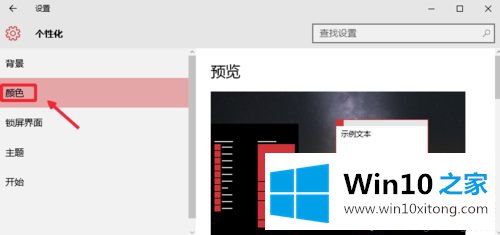 3、个性化窗口中,我们在左边选择颜色选项打开,如图所示操作。
