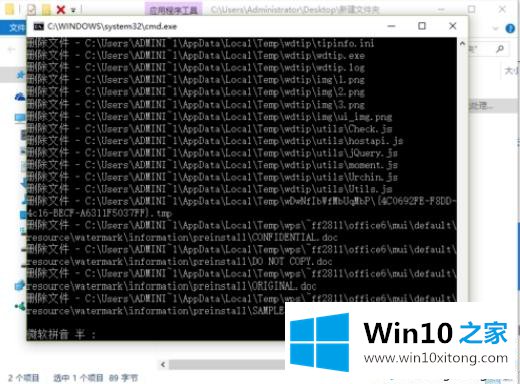 11、运行批处理文件后,会对临时文件进行自动清理。如图所示;