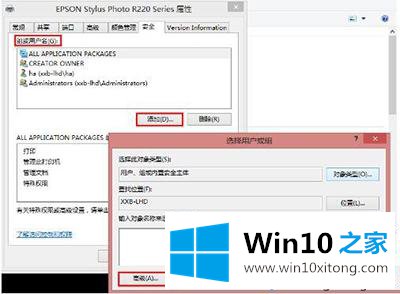 7、可以看到“everyone”已经添加到“组或用户”的列表中,为其设置权限,我们在“打印”后面“允许”下的复选框打勾,只给分配打印权限;