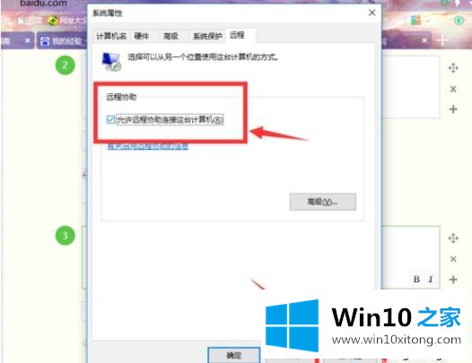 3、勾选对话框中的“允许远程协助链接这台计算机”。