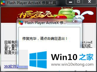 5、下载后不用安装,会立刻弹出“flash player activex修复工具”。点击立即修复,这是如果360浏览器打开,会提示你先关闭360浏览器。
