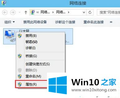 3、在更改适配器设置中我们可以看到所有的连接,选择你连接网络的连接,如使用网线的就是“以太网”,无线则选择“无线连接”,右键点击,选择属性;