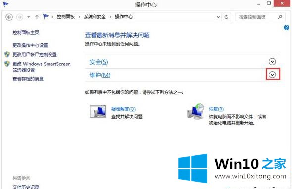 1、进入控制面板-系统和安全-操作中心,展开“维护”;