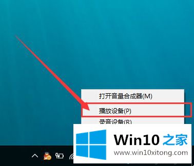 8、接下来,建议大家对着桌面上的声音图标击右键,点击选择“播放设备”选项。