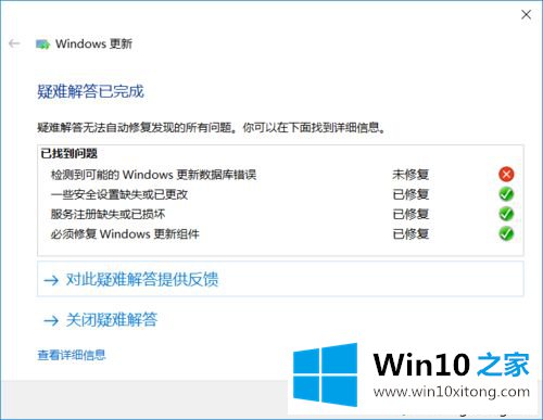 5、运气好的修复成功,运气不好的部分修复成功,有的就无法修复,那我们只能选择延迟功能更新了。(window10新版本不能停止更新……)