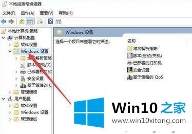 3、在本地组策略编辑器窗口中,点击“计算机配置”,然后找到“Windows设置”: