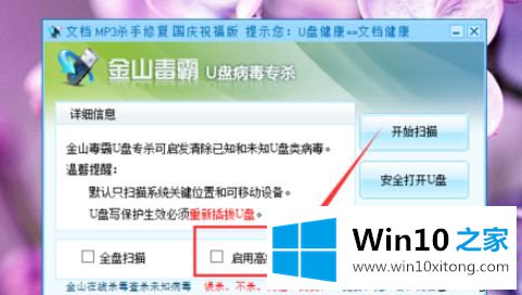 1、除了使用简单的文件权限管理中设置以外,我们还可以使用其他第三方软件来设置U盘的读写权限,例如:金山U盘病毒专杀软件,点击软件界面中的“高级设置选项”设置。