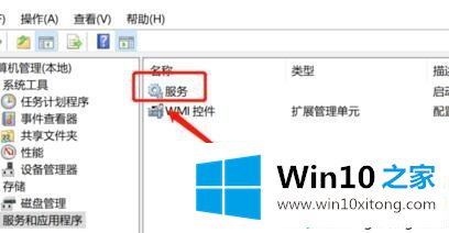 2、接着,选择名称为“服务和应用程序”的选项,进一步点击“服务”选项;