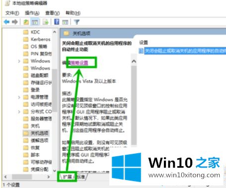 5、当然你也可以点击右侧的【策略设置】快速打开,但是要确保底部选项卡是【扩展】;