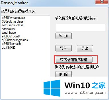 7、点击“设置禁止打开的程序列表”按钮,即可对禁止打开的程序列表进行编辑操作。在如图所示的界面中,直接可以输入想要禁止的程序,点击“添加”按钮即可。或者点击“深度检测程序特征”;