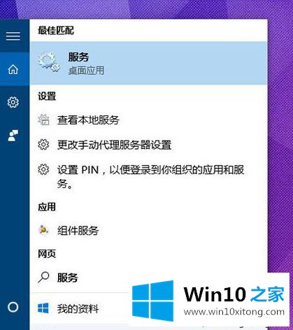 1、在任务栏可以搜索的位置中输入“服务”,在显示结果中打开“服务”;