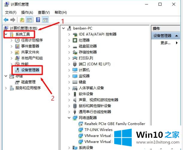 2、在Win10的“计算机中的管理选项”页面的“系统工具”下,单击“设备统制器”,就能打开Win10的设备统制器了,参考下面的图片所示。