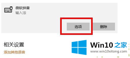 3、点击右侧任务栏的语言,再点击右侧中文下方的“选项”。