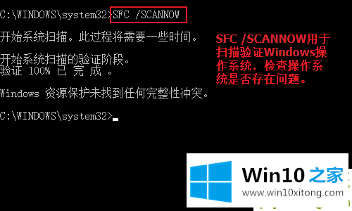 3、首先执行SFC /SCANNOW的命令搜索已经安装的系统。